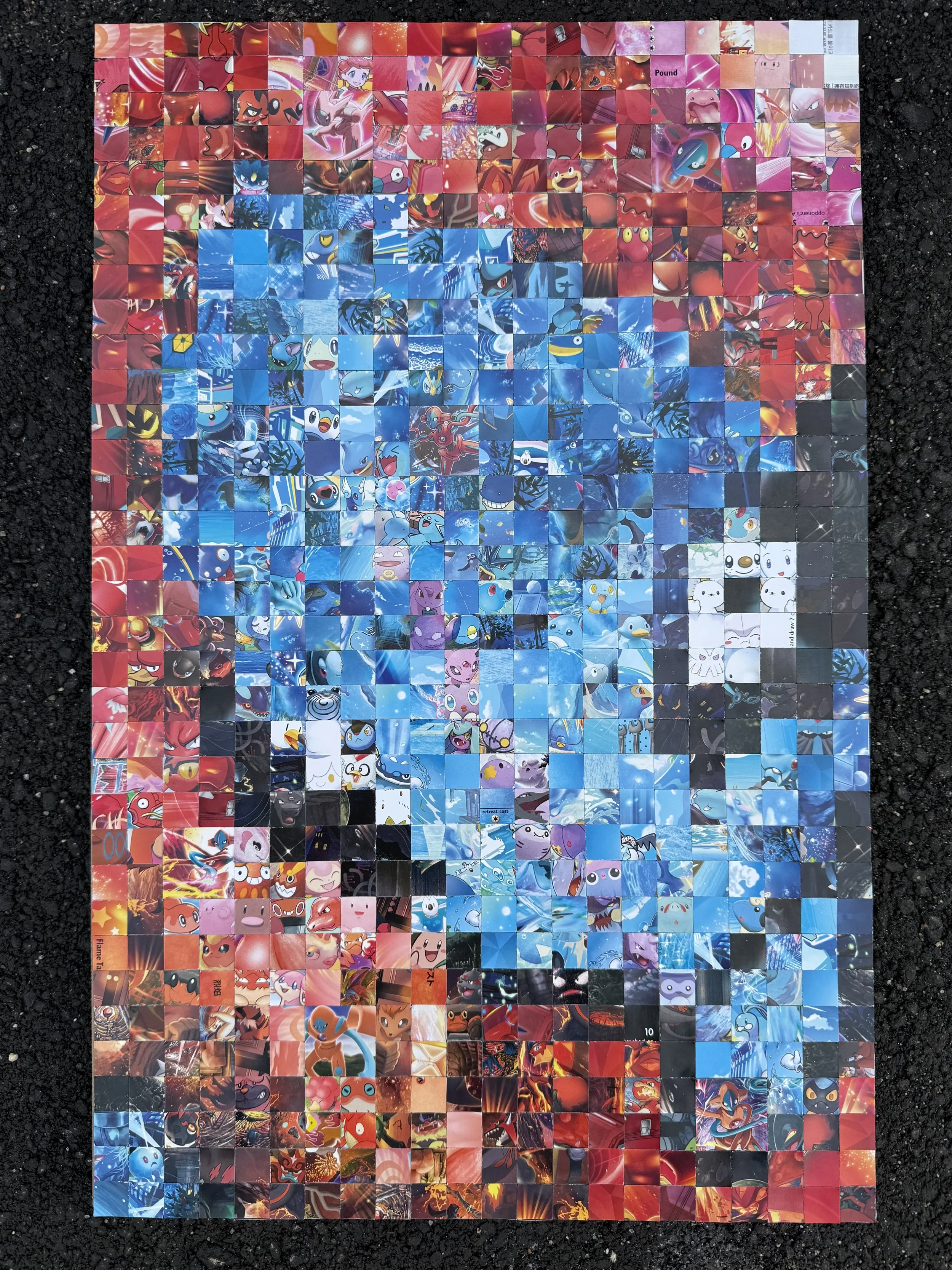 Bringing new life to recycled “BULK” Pokémon cards. Handmade Mosaic Pixel Collages inspired by Pokémon TCG artwork.
